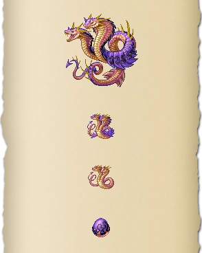 (템플 웜들은 침착하고 유순하며 꽤나 붙임성 있는 종입니다. 꽤 은둔적이고 거의 보이질 않지만 마주치게 되면 종종 여행자들을 자기 영역 안을 안전하게 통과하게 인도해주거나 자기 능력껏 최선을 다해 조언까지 해줄 겁니다. 거주지를 오래된 인간 정착지의 폐허, 특히 신전에 잡는 경향이 있고 옛 버려진 신전을 찾아다니는 탐험가들과 그곳에서 사는 웜한테 놀란 이들이 붙여준 이름을 따온 곳이기도 합니다. 매우 지능이 높고 두 머리는 서로 함께 잘 협동합니다. 템플 웜들은 빛 마법에 능숙하고 자신들의 집을 항상 밝혀주는 반짝이는 빛의 티끌로 꾸밉니다. 이 용들은 매우 위험한 신경독을 갖고 있지만 너무 차분한 성격인 나머지 자기 방어용으로 무는 게 아니고서는 내켜하지 않습니다.)