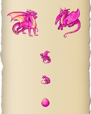 - Bright Pink Dragons used the same base hatchling sprites as Dark Green Dragons, Holly Dragons, and pre-2018 Red Dragons.