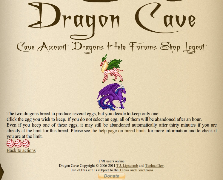 The success of breeding depends on several factors, the primary being rarity of the dragons in question. Rare dragons are far less likely to produce an egg of their species, though pairing two rares versus one rare and one common has an equal chance of producing. In some cases, the pair may refuse, producing no egg and disallowing the pairing of those two dragons in the future (any refusals involving holiday dragons are removed during their associated holiday breeding period). TJ09 has also confirmed that the longer a dragon goes without breeding, the higher the chance is for a successful breeding to occur.