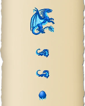 Ice Dragons are fierce predators who hunt using their extremely cold breath. The breath of an ice dragon can freeze its prey solid in seconds. The body of an ice dragon is so cold that icicles will form along its skin no matter the outside temperature.