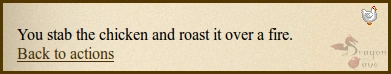 “"Rumor: When killing a chicken the message says "You stab the chick and roast it over a fire." Feel free to verify it if possible"