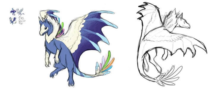 The sky blue tail stripes were changed into a gradient and the wing membrane gradient was changed to have twinkling speckles instead during the sprite shading change, both of which I love. Thanks, Mewtie!